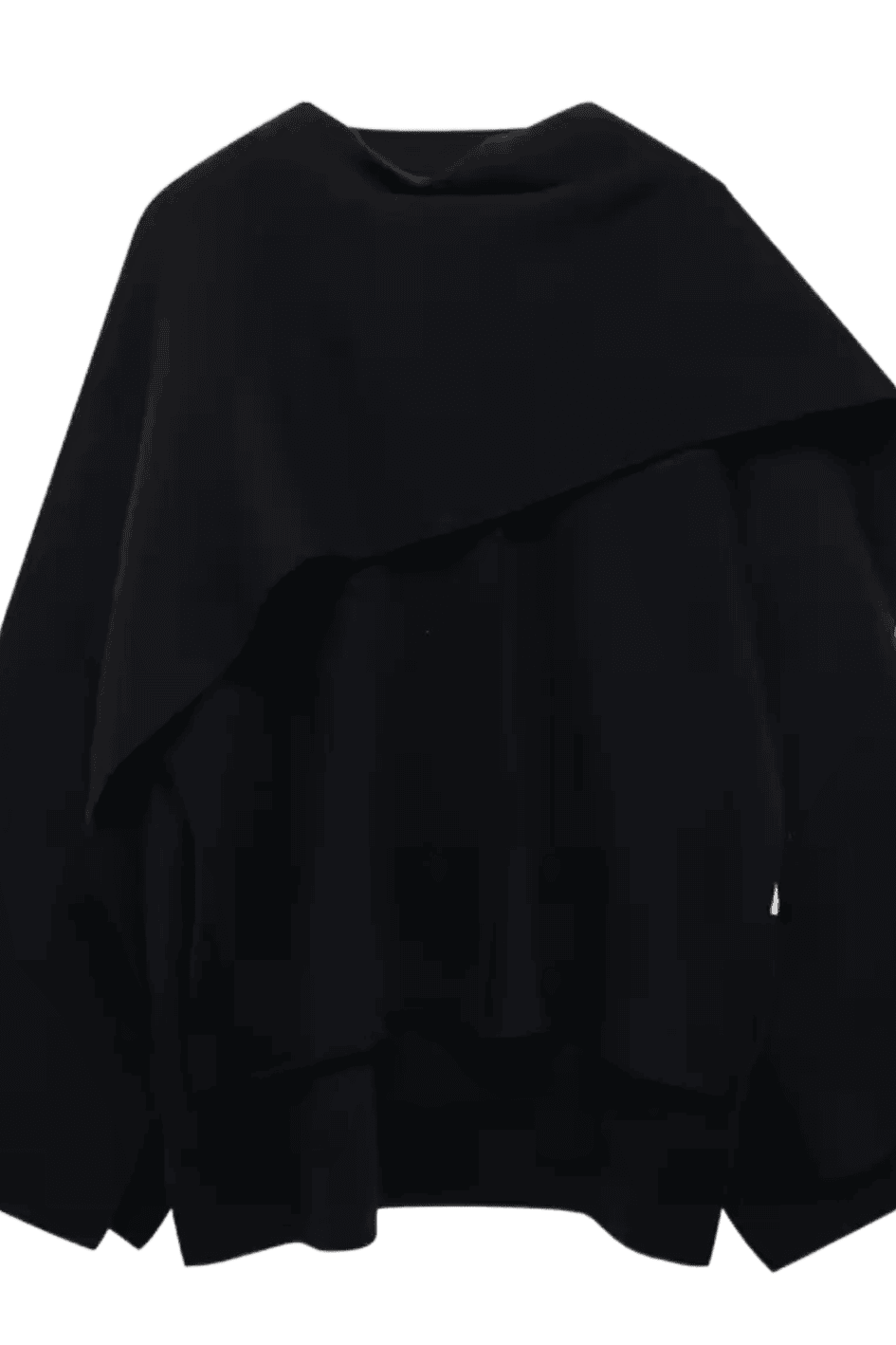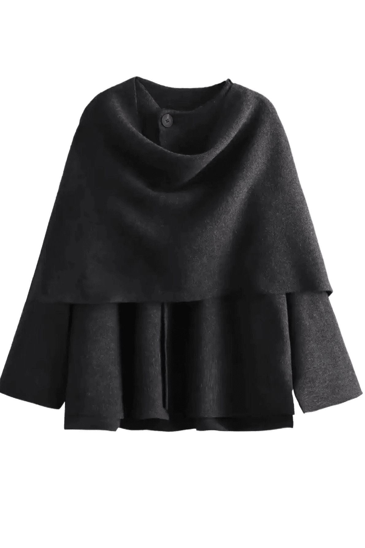 • Schnitt: Cape‑Stil ohne Ärmel oder mit breiten Armöffnungen, sorgt für Bewegungsfreiheit und elegantes Fallverhalten