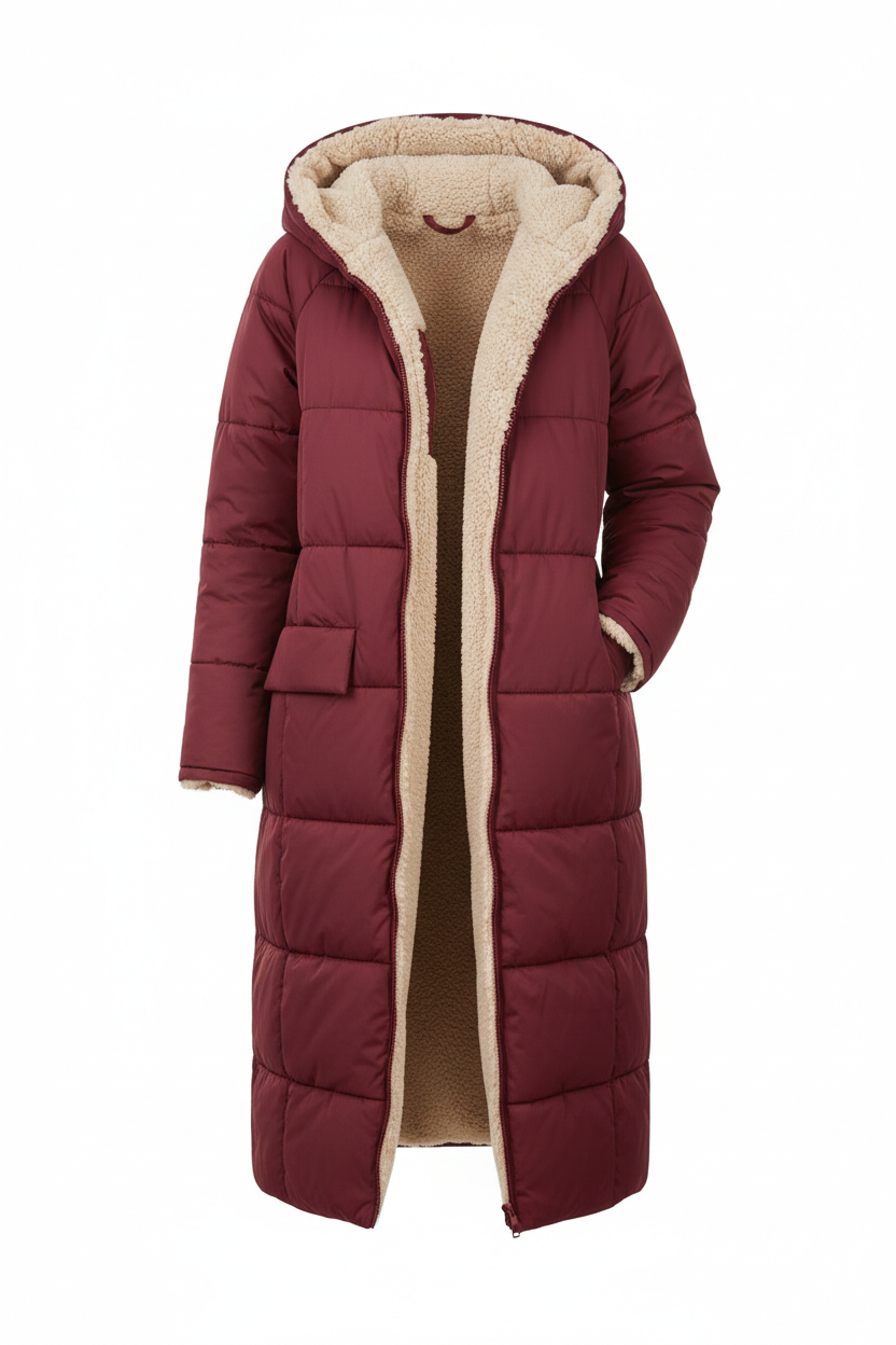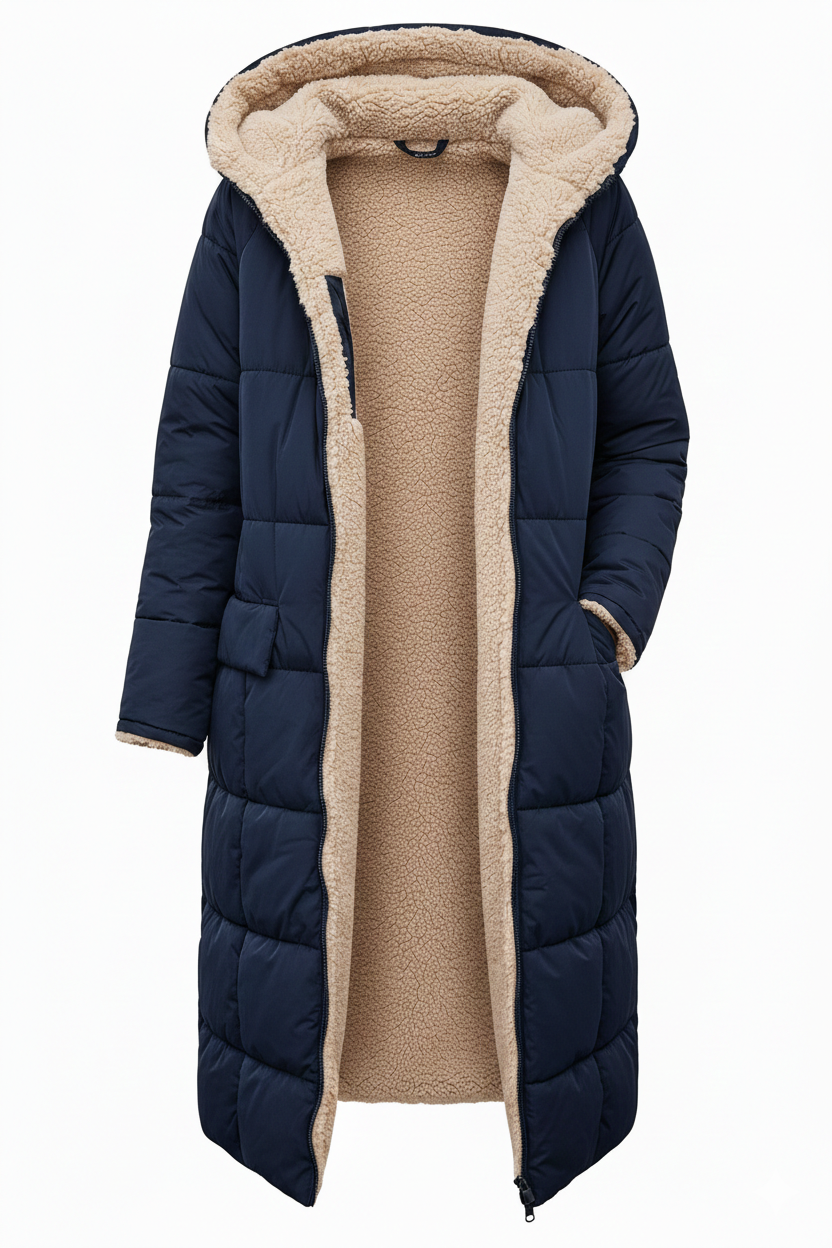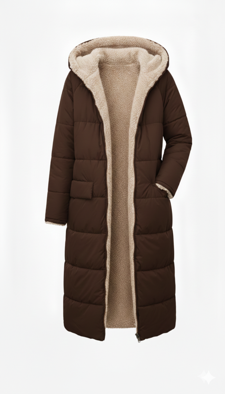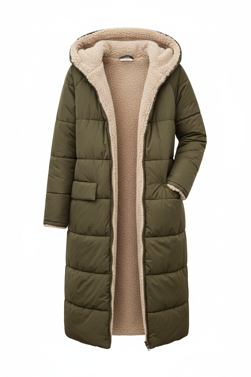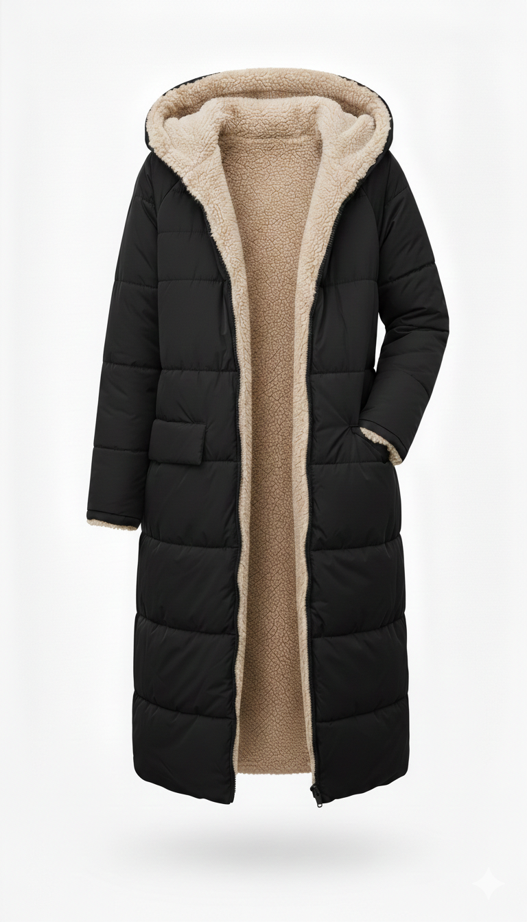 Der doppelseitige Wintermantel von NYHM ist perfekt für kalte Tage und vereint Stil, Wärme und faszinierende Vielseitigkeit. Das wendbare Design bietet Ihnen zwei elegante Looks in einem Kleidungsstück: eine charaktervolle, gesteppte Seite und eine Seite mit einer weichen, lammfellähnlichen Textur für ein noch wärmeres und gemütlicheres Gefühl. Der lange Schnitt schmeichelt der Silhouette und bietet zusätzlichen Schutz vor Kälte, was sie zu einem Must-have für diese Saison macht.