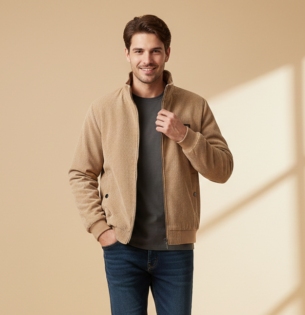 Die Michael Cordjacke wurde für Männer entwickelt, die an kühlen Tagen Komfort und eine gepflegte Optik miteinander verbinden möchten. Außen robuste Cordstruktur, innen ein weiches Fleecefutter, das sofort für angenehme Wärme sorgt. Kein unnötiger Schnickschnack, kein kurzlebiger Trend – sondern eine Jacke, auf die man sich jeden Tag verlassen kann.